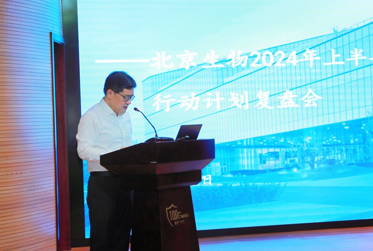 Zhang Yuntao, Chief Scientist of China National Pharmaceutical Group Co., Ltd, Vice President of CNBG, and General Manager of BIBP, delivered a working speech; Zhang Xuemei, Deputy Secretary of the Party Committee and Executive Deputy General Manager, delivered a first-half management report entitled "Seeking progress while maintaining stability, setting off again, Innovation, quality and production for the future"; Li Xinguo, Deputy Secretary of the Party Committee and Secretary of the Discipline Inspection Commission, conveyed the work spirit of the Third Plenary Session of the 20th CPC Central Committee and the Seminar for Leaders of Central Enterprises; Jing Yumei, Financial Director, delivered a first-half financial situation analysis report; and Yang Ming, Deputy General Manager, conveyed the spirit of the 2024 Semi-annual Work Conference of China National Pharmaceutical Group Co., Ltd and the 2024 Semi-annual Work Conference of China National Biotec Group Company Limited.
